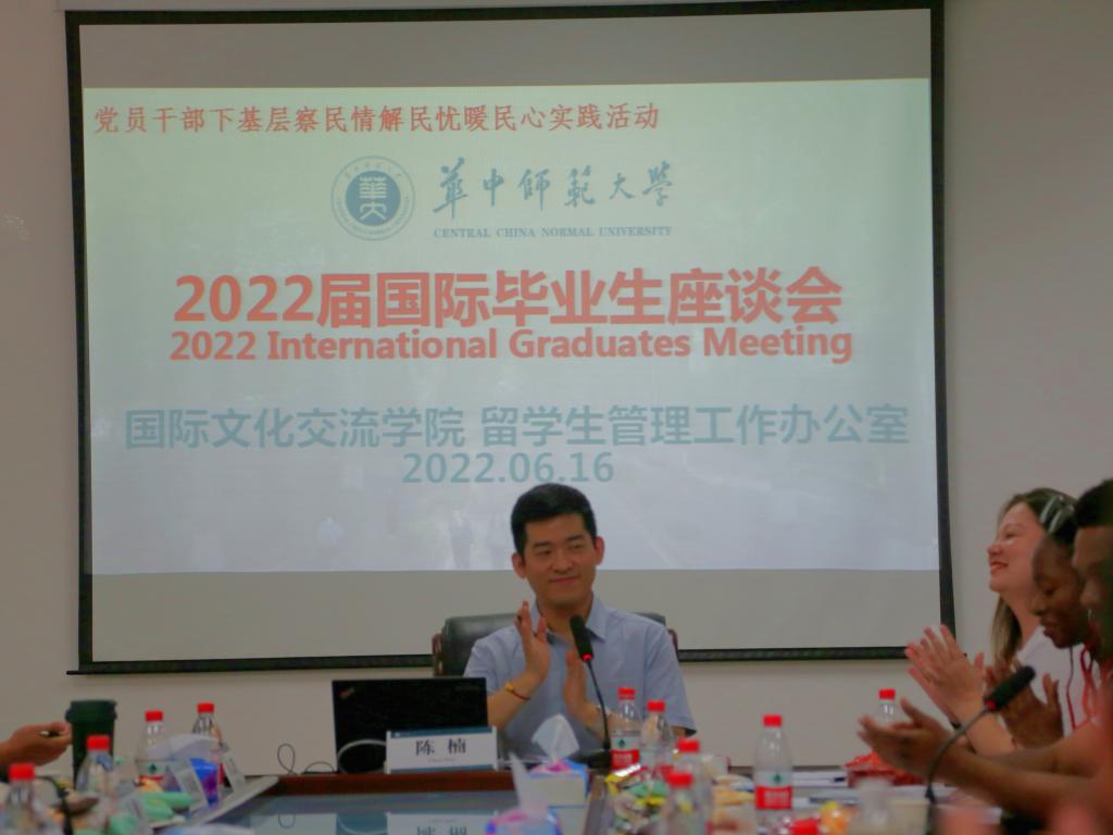 The 2022 CCUN International Graduates Forum was successfully held on the afternoon of June 16th. Professor Peng Shuangjie, Vice-President of Central China Normal University, Professor Zhao Changfeng, Director of the Department of International Politics, School of Politics and International Studies, Associate Professor of School of Psychology Cheng Xiaorong, Associate Professor Xie Zhipeng, Deputy Director of the Department of Business Administration, School of Economics and Business Administration, Wang Li, The First Secretary of College of International Cultural Exchange (CICE), Gao Zhuoxian Dean of CICE, Director of International Students’ Affairs Office (ISAO), and Zuo Shuangju, Vice President of the CICE and International graduates attended the forum among many others. The meeting was presided over by Chen Nan, Director of CICE.